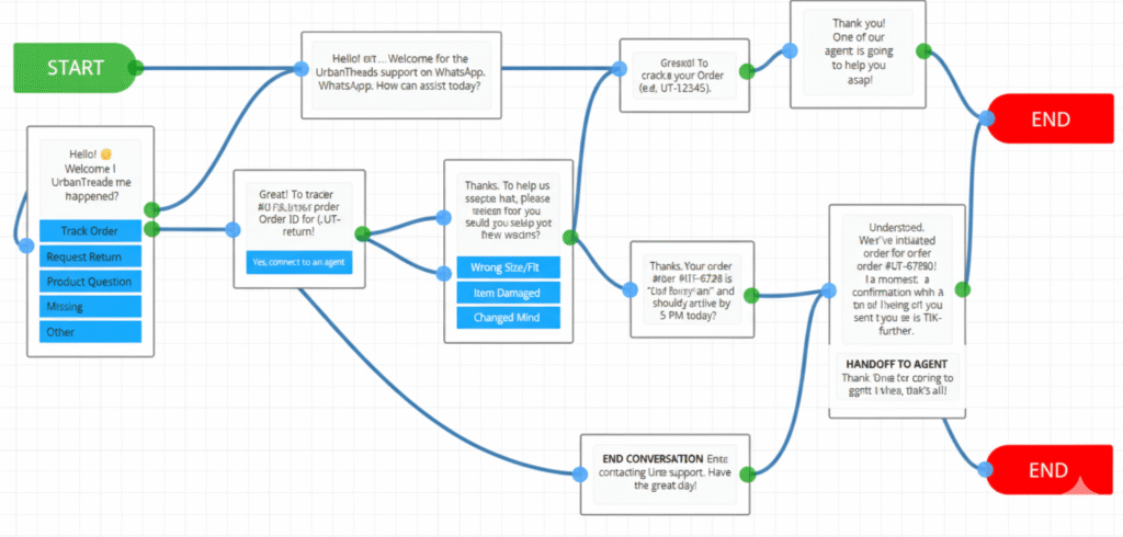Build smart WhatsApp chatbots without coding. Design complete customer conversations using our simple drag-and-drop flow builder.